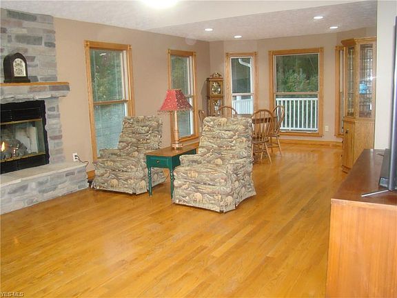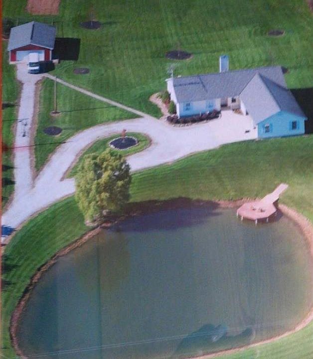 Fall in love with this beautiful 3 bed ranch on 5 acres with a chemical-free stocked pond with dock. Home is universal design for all stages of life. Features 3 full baths, great room with gas fireplace and dining area. Access home from 3 bay attached garage with keyless entry. Large country kitchen with breakfast nook, home has Pella windows, and 36" doors throughout house. Basement can be accessed by an elevator for persons with mobility limitations. Basement has finished family room and multi-purpose room and bath. Property has low maintenance landscape plus 24 x 32 pole barn with electric and water.
