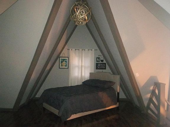 Please message on Zillow, text or call to schedule a showing, open availability. This spacious, cute and cozy furnished A-frame has a bedroom and loft with walk-in closet. It features an electric fireplace, patio, large wrap around deck, front, side and backyard. Has a fridge, stove, dining room set. Tenant is responsible for all utilities and lawn care.