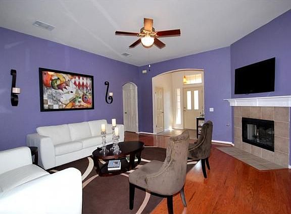 Open floorplan with spacious living and attractive corner fireplace**Wood flooring in living/dining/hallway**Slate tile in kitchen**Spacious master w/tray ceiling**Mstr bath w/dual sink vanity/tile flooring,separate shower, 2 closets**Kitchen features stainless appliances including double oven (wired for gas and electric), built in microwave, dishwasher & refrigerator, breakfast bar**Garage outfitted as commercial kitchen (can be coverted back)