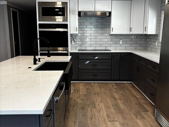 New water heaterNew quartz countersNew floorsDouble refrigeratorSteel carportLarge fenced lotNew cabinets