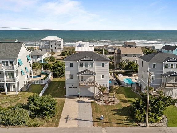 With three of the five bedrooms being primary suites, this home also offers an inground Pool, Elevator, game room, and a one car garage! This home features crisp white cabinetry in the kitchen with an oversized island, white quartz counters, stainless steal appliances, tile bath and showers, high ceilings, and LVP flooring throughout! Fresh landscaping makes the scenery even more beautiful. Freshly painted throughout, this home boasts a crisp, modern look ready for its new owners! Multiple decks enjoy beautiful sunrises, sunsets and gorgeous ocean and sound views. Beach access is just steps away. This property is a great investment opportunity! It has rental history with excellent rental opportunities. This beautiful home offers Coastal Living at its finest! Come see what 1903 Emerald Dr has to offer!