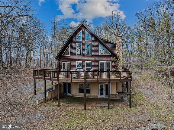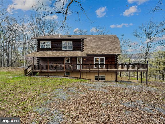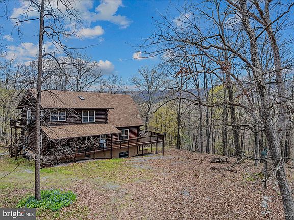 MULTIPLE OFFERS HAVE BEEN RECEIVED. PLEASE SUBMIT OFFERS BY 6PM SUNDAY NIGHT 4/27 . SELLERS PLAN TO REVIEW EARLY MONDAY. Rugged luxury retreat with a side of seclusion and quiet! Think Yellowstone meets WV! This solid log one owner home built by Hampshire Builders in 1999 sits on 15.11 acres and adjoins the additional 23.84 acres with well and electric giving you 38.95 acres to hunt or hang out and enjoy the wildlife! Take in the winter mountain views from every level of the house with soaring windows and a wraparound deck for outdoor fun! The home features a huge living room with stone fireplace, cathedral ceilings & windows that allow for some amazing natural light, dining area that opens to the kitchen, and 2 bedrooms and bath on the main level. Upstairs is the primary bedroom w/ gas fireplace, full bath and loft/sitting area that gives way to overlooking the living room and of course the WV mountains and woods. The basement also boasts lots of windows w/natural light in the open family room with a woodstove and walkout level area. Lots of room to roam, enjoy campfires and entertaining your friends and family. Heat is electric heat pump with gas back up and a woodstove. Gas tank 1100 gallon-buried and owned. Roof was replaced in 2023 with 20 year shingles, newer appliances, and freshly stained in 2023. 2nd lot with well and electric would be great for a camper or sell to your best friend to keep as a neighbor! All this right around the bend from an awesome frisbee golf course! Very minimal restrictions and no HOA fees.