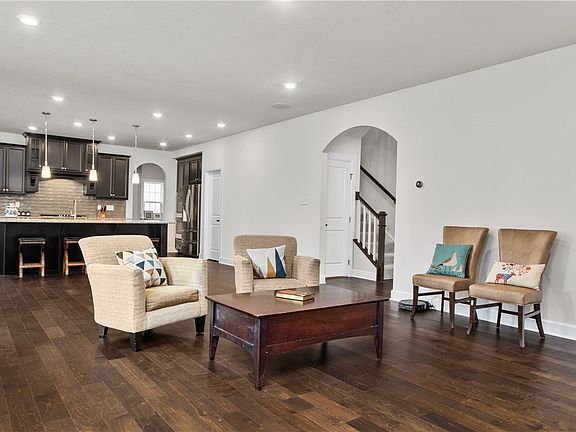 Better Than New! Immaculate and spacious three year young 4BR 3.5BA brick home on level to wooded cul-de-sac lot. Sun filled 2-story entry flows into 9' ceilings and rich wide plank hardwood floors throughout the entire first floor. Elegant french doors open to office and dining room features coffered ceiling, chandelier and multiple windows. Open floor plan unites the family room, kitchen and morning room with wall to wall windows and glass doors to the TREX stlye deck with wooded views. Gourmet KIT features 5 burner gas cook top w/exterior exhaust, dual wall ovens, wine fridge, granite dine-in island & walk in pantry. Convenient second office and mudroom lead to 3 attached garages. Owner's suite with his/hers walk in closets, tray ceiling, custom shower w/glass doors, granite vanity with his/hers sinks. Fabulous finished walk out lower level with home theatre, surround sound and 2 storage rooms. Great location in North Allegheny Schools & walkable to Franklin Elementary.