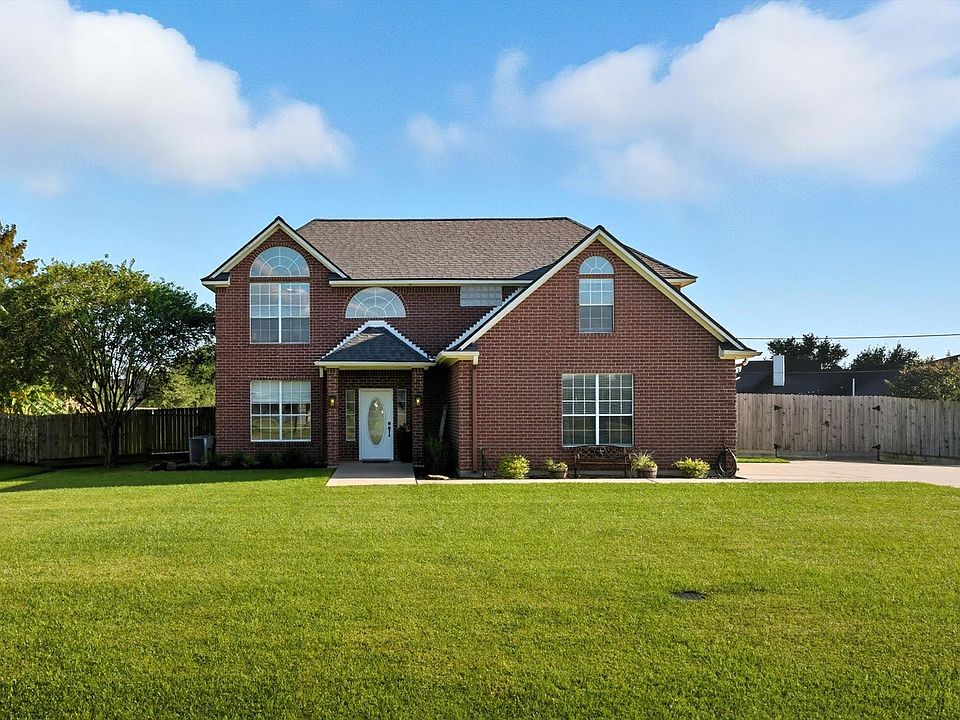 Welcome to this Plantation beauty that sits on half an acre located in the Barbers Hill I.S.D. This home has formal dining room, updated kitchen with breakfast nook, and open to living room with wood burning fireplace and plenty of windows to see your new backyard. Primary suite is tucked away for privacy and bathroom has double sinks, soaker tub, and standing shower. Upstairs offers a game room, recently updated bathroom with double sinks, and 3 bedrooms. The backyard is fully fenced and ready for all of your activities. Added concrete for extra parking and gate access to park your toys and plenty of room for a shop and pool! Roof was replaced in 2025, updated wood-like tile, new carpet, septic was just pumped 09/25. Call for a showing!