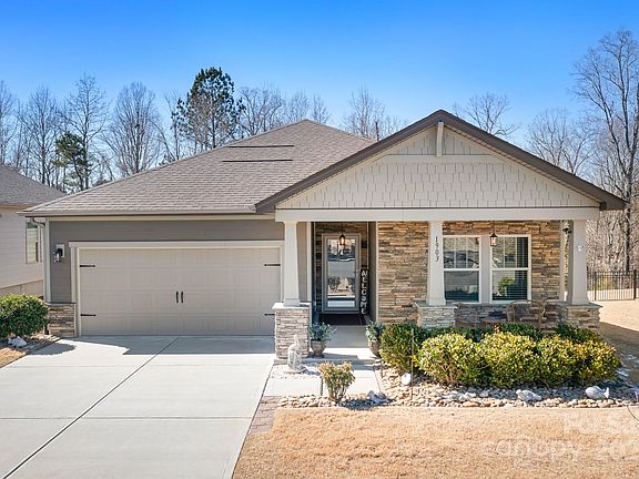 Beautiful like new well cared for home w/ Tons of Upgrades!. Private backyard on a nice quiet cul-de-sac. This property features a private fenced backyard that backs to woods! Beautiful views with a variety of wildlife that visits daily. Beautiful open floor plan, gorgeous kitchen w/ quartz tops, 5 burner, dbl oven gas range with MW that is vented! Great rm features a beautiful gas logs fire place. All bedrms have ceiling fans. Inviting Primary Ensuite w walk-in closet, tile surround shower, dual sink vanity! Covered back patio and a spacious deck! Minutes to Verdict Ridge CC, Hwy 16, 30 mins to Airport! A few special features-Dual ceiling fan over back patio; newly stained back deck; premium lighting package indoors and outdoors; long 6 car driveway, upgraded landscaping with edging, river rock (front) and rubber mulch (back). Fantastic community pool! Located on a quiet cul-de-sac, this lovely home is ready for you! Wow! Price Improvement! Take advantage of this opportunity today!