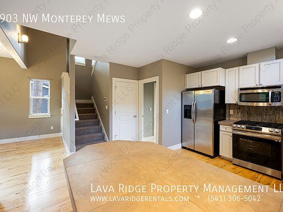 MOVE-IN SPECIAL $200.00 OFF YOUR FIRST FULL MONTHS RENT Charming 2-Bedroom Townhome on Bend's Desirable Westside Discover the perfect balance of comfort and convenience in this beautiful 2-bedroom, 2-bath townhouse located on Bend's sought-after west side. Nestled in a quiet community of well-kept townhomes with peaceful fountains throughout, this home offers a serene atmosphere with easy access to everything Bend has to offer. Enjoy an inviting interior featuring high ceilings, abundant natural light, and a cozy gas fireplace that creates a warm and welcoming living space. The open floor plan flows effortlessly from the living area to the kitchen and dining space, making it ideal for relaxing or entertaining. The home also includes a detached garage for secure parking and extra storage. With its prime location, you'll be just minutes from great shopping, restaurants, and outdoor recreation, including a short drive to Mt. Bachelor for year-round mountain adventures. Experience the best of Bend living in this comfortable, quiet, and beautifully maintained community. Sewage included 2 Stories Appliance Dishwasher Appliance Garbage Disposal Appliance Ice Maker Appliance Microwave Appliance Oven/Range Appliance Refrigerator Carpet Cat Friendly Central Heating & Cooling Detached Single Car Garage Dog Friendly Double Sinks Master Bath Electricity Resident Responsible Garbage Resident Responsible Gas Resident Responsibility Gas Fireplace Heating Forced Air School Cascade Middle School High Lakes Elementary School Summit High Septic; No City Sewer Connection Sewer Included Stackable W/D Units Stainless Steal Appliances Storage Storage Shed Under Hoa Management Unfurnished Vaulted Ceilings Walk In Shower Wood Flooring
