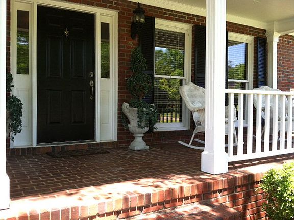 Wonderful, one-level, brick home, great curb appeal, breezy front porch with floored brick pavers. Great room, dining, and foyer very open vaulted ceiling, fireplace and built-ins in Great room. The kitchen is stunning! up-dated, spacious, wonderful work island, granite counters bright airy open to breakfast room, tile floor, wood floors in foyer, dining, and hallway, master bath has been redone