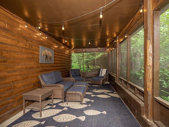 Shady patioModern and rustic elementsAttached screened in porchGorgeous viewsThree stall garageVaulted log beamed ceilingsOpen floor plan