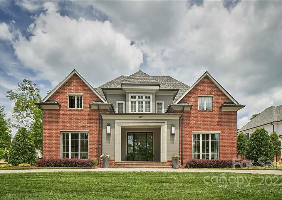 LUXURY LIVING IN MYERS PARK! Stunning custom modern home on iconic Queens Road W. Enjoy light & bright open spaces. Desirable floorplan for effortless entertaining & everyday living. Unique, custom & high-end finishes throughout. This home boasts a beautiful dining rm, study & show-stopping chef’s kitchen w/gorgeous island opening to a fireside family rm & large breakfast area. Spacious main level primary suite features an elegant bathroom & walk-in closet w/w&d hook-ups. The main house & guest house are equipped w/accordion style doors that expand the interior entertaining space to the incredible covered porch & pool area featuring built-in grill, fireplace & retractable porch roof. 3 addt'l bed, 3 full baths, large laundry rm, study & a bonus rm w/bar, upstairs. 5th main house bedroom (currently used as an exercise rm) w/full bath over attached garage w/convenient access from the garage & side entry. Fixed stairs to addt'l storage on 3rd floor. Corner lot w/ circular drive.