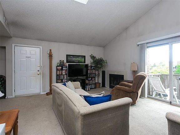 3rd floor unit w/spacious LR w/vaulted ceilings & skylight.Woodburning FP in LR & the entire condo is scheduled to be completely repainted.Updated bathroom w/ceramic tile surround shower.In-unit laundry facilities,plenty of closet space & private balcony round out this beautiful condo.The HVAC system recently updated. This property is move-in ready and the community offers, a swimming pool, tennis courts, and a play area.
