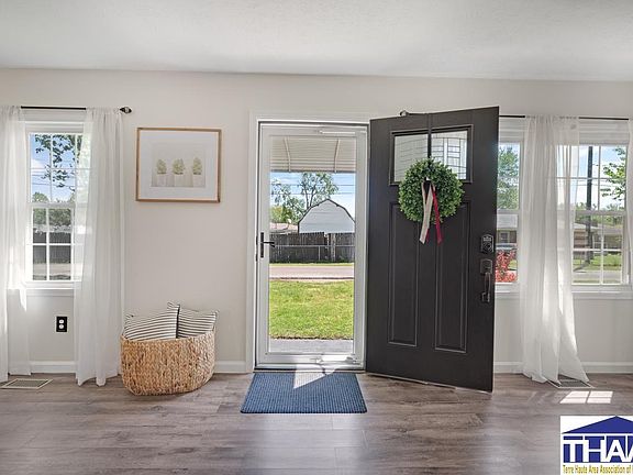 This ranch-style home abode offers an inviting curb appeal with its freshly laid mulch and vibrant plants. Step inside to discover a home that flows effortlessly from one room to the next, all adorned with a fresh coat of paint that gives the space a bright and airy feel. Modern updates are evident throughout, with contemporary lighting fixtures, new doors, along with newer flooring that adds depth and warmth to the space. The windows are a homeowner's delight, featuring a tilt -in design for easy cleaning. The living room is expansive and filled with natural light, offering generous space for family and friends to come together. At the heart of the home the kitchen has undergone a chic transformation with pristine white cabinetry and stylish hardware. Across the kitchen is a nook perfect for a coffee bar. A brand new dishwasher is included among the stainless steel appliances. Adjacent to the kitchen, the dining room is bathed in natural light from the French doors, enhanced by the ch