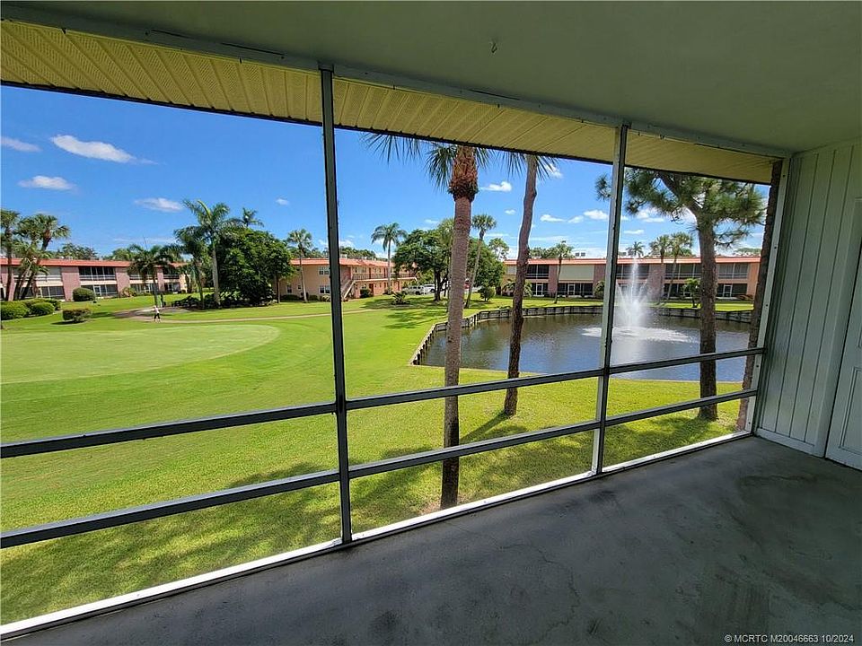 Reduced! Welcome to MYCC with UNLIMITED GOLF on P.B.Dye designed executive golf course. Housing for older persons. This one bedroom and one bathroom condo with a fantastic view of the golf course and lake plus Eastern exposure. Entry has a screen door and foyer. Kitchen with white cainets, flat top electric range, refrigerator, microwave and dishwasher plus tile flooring. Living room has sliding glass doors to the balcony and dining area. Master bedroom has a walk-in closet. Your Bahroom has a tub/shower combination. The unit is being sold FURNISHED. Rela on your screened balcony that has a two storage closets. Many amenities:2 fishing piers on the St Lucie River. 2 clubhouses, pool, bocce, putting green, shuffleboard, library, ping pong/billiard room and workshop. Your WIFI and cable is included as well was water/sewer. No water heater No pets, no trucks No rentals for the first 3 years, owner must reside in the unit 90 consective days lease min of 3 months to 7 mon
