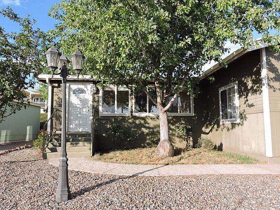 Shaded by magnificent maples, this home shows like a model with upgrades galore! With Great Room vaulted ceilings, upgraded light fixtures and stylish window coverings, custom hickory cabinets topped by gorgeous quartz counters and tile floors in kitchen and baths, Berber carpet in Great Room and bedrooms, custom entry doors, vinyl dual paned windows, upgraded light fixtures, handsome window coverings and fresh exterior paint, this 2 bedroom 2 bath manufactured home with entry sunroom is turnkey and move in ready! With the sunroom, the home offers 1700 square feet of quality, low maintenance living. A 1999 Silvercrest model manufactured home, it offers a fully outfitted kitchen with hickory cabinets and quartz counters (worth repeating!), gas range oven, refrigerator, breakfast bar, pantry and abundant cabinets and counter space. The master bedroom is spacious and offers vaulted ceilings, ceiling fan, walk in closet, master bath with Silestone topped hickory vanity with dual sinks, easy walk in shower, and linen closet. The second bedroom also offers vaulted ceilings, fan and walk in closet. There is a laundry room with built ins, clothes hanging rod and dryer, 2 car garage with built in cabinets, fenced back yard with redwood and trex deck and 8’ x 12’ shed for workshop or storage and fully landscaped grounds with fruit and shade trees. Light and bright with an open floor plan, this home offers low maintenance, affordable living close to shopping, The Crossings medical facilities, Embry Riddle Aeronautical University and minutes to the Prescott Courthouse Square. Enjoy easy walking and birding at nearby Willow Lake or picnicking, Bocci Ball, canoeing and kayaking at Watson Lake.