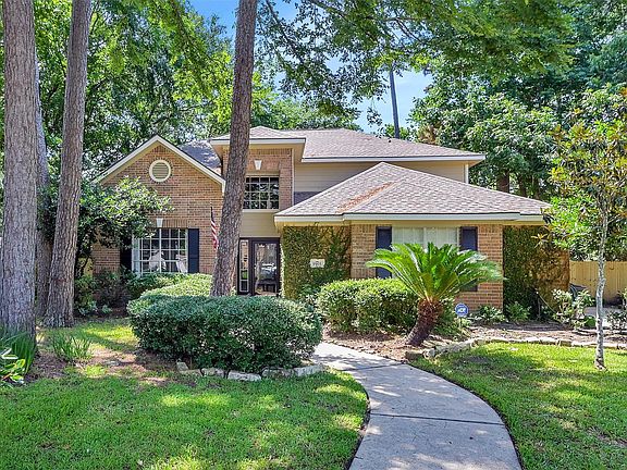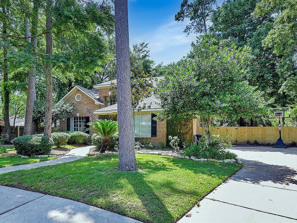 **HUGE LOT IN THE MIDDLE OF A CUL-DE-SAC**BEAUTIFUL BRICK 5 BED/3-1/2 BATH HOME WITH 2 LIVING AREAS PLUS GAME ROOM! Lovely 2-story entry with both formals; high ceilings. Living has a custom bookcase and would make a wonderful library or music room. Spacious Dining with easy access to the Kitchen which boasts beautiful granite counters, breakfast bar, gas cooking. Den has custom built-ins flanking the fireplace. Lots of large windows throughout the home! Primary bedroom with en-suite bath has double vanities, separate tub and shower; large walk-in closet! One secondary bedroom has en-suite bath. Two additional bedrooms share large bath with double sinks. Fantastic Game room with more custom cabinetry and windows overlooking the backyard. Huge backyard with mature trees. This home delivers on style, space and location. Minutes from I-45, The Woodlands, Exxon Campus, Grand Pkwy, first class medical, shopping, restaurants and Conroe ISD. Schedule your tour today. This one will go fast!