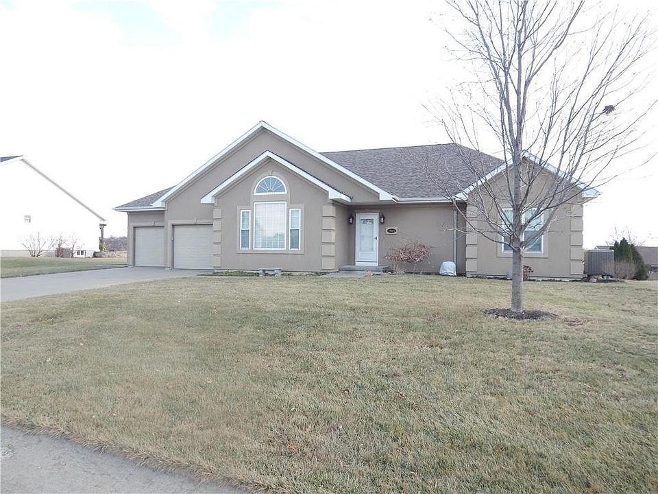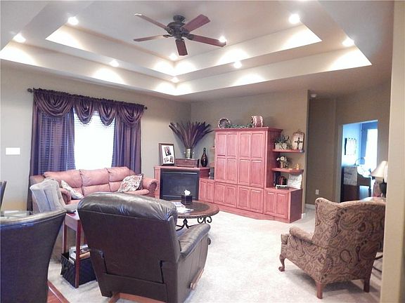 This home has many extras, a newer HVAC, an open floor plan, 10'ceilings with 12'ceiling in LR. Custom kitchen has custom built cabinets a 10' island with gas cooktop, dedicated sink and prep area and a telescoping exhaust fan!! Cabinets have soft-close drawers. The door between stove and refrigerator is actually a built-in pop-up for a Kitchen Aid mixer for use without taking up counter space. There are several pullouts to easily get to pots and pans + a pantry. LR has a gas fireplace, a custom built entertainment cabinet. Master BR w/walkin closet and Bath on main level + another BR, Bath with jetted tub. Main floor also has a laundry room and an additional Office/Piano Room. The approximately 1500 finished sq. ft. lower level includes two bedrooms one with walk-in closet , a bath, 2 excellent storage areas and a versatile exercise/game room area or whatever you want to make it. A maintenance free partially covered deck, an attic fan a sump pump and a wide stairway to the lower level and ample storage space throughout are just some of the amenities this home has to offer. Home also comes with a storage shed for your lawn maintenance equipment. Seller has reserved all draperies, curtain rods and the kitchen valence. All blinds go with the property.