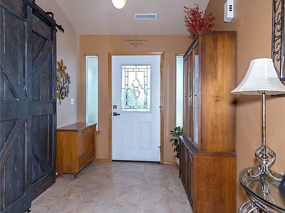 Check out this custom floor plan! Welcome to the single level well-maintained 1,909sqft, 3 bed, den/flex room/4th bedrm, 2 bath home in Currier Creek. Walk in to vaulted ceilings & a large great room that looks out over the mature landscaped back yard. You'll want to pull up to the eating bar that overlooks the large kitchen w/ ample cabinet storage. Enjoy the great room's gas fireplace on a cool evening, or get work done in the private office off the primary suite. The split plan consists of guest bed's/bath on one side & primary on the other w/ large bath & plenty of closet space. Sit in the hot tub, or enjoy a drink on the protected back patio. The 3 car garage is perfect for projects & vehicles. Solar panels too!