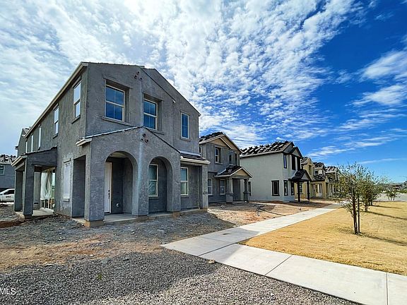 Come see this beautiful home in a great neighborhood. Tree-lined streets, pedestrian-friendly sidewalks and a 5,500 sf recreation center with resort style pool an kiddie pool, shaded ramadas, parks, gathering areas, pickelball courts and basketball. Close to I-10, 101 and 303. Walking distance to restaurants, movies, entertainment and shopping. Home features upgraded stainless steel appliances in a large kitchen with granite countertops and a two tone cabinet look with Shale painted cabinets on the large kitchen island and white cabinets in the perimeter of the kitchen and continued into the bathrooms. Beautiful upgraded 6 X 35 gray plank tile all throughout the downstairs minus the bedroom. Upstairs provides same tile in wet areas including the laundry, primary bathroom, and second bath.