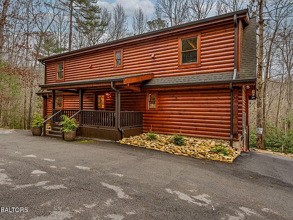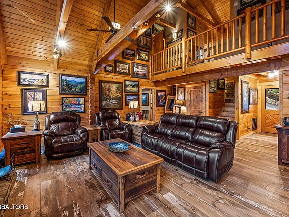 This 3 bedroom, 3.5 bathroom log cabin, nearly 2,200 sq ft in size, situated on a private 5-acre parcel, in peaceful Walland, offers a perfect mix of rustic charm and modern amenities. It's conveniently close to the Great Smoky Mountains National Park, Townsend, Wears Valley, along with many other attractions, making it ideal for a permanent home, or second home. Recent upgrades have been made to enhance both its functionality and appeal. The exterior received a fresh look in 2021 with new oil stain and oversized bronze gutters, along with a new, durable roof. Inside, the living room boasts high, vaulted ceilings, exposed beams, and a large fireplace. This open space leads into a kitchen/dining area, equipped with new appliances and tile flooring. The bedrooms upstairs feature solid Acacia wood floors. All bathrooms have been remodeled, featuring custom showers, unique vanities, and new fittings. The cabin has also been equipped with a new high-efficiency HVAC system, full home Generac generator, a new water heater, and an upgraded water filtration system. Outdoor living is a highlight here, with a newly stained deck overlooking a peaceful mountain setting. The property includes about 1 mile of private hiking trails, flagstone paths, and well-maintained planting areas. Inside, new paint and stained walls, along with updated electrical fixtures, add to the cabin's welcoming atmosphere. Storage has been thoughtfully addressed with a dehumidified and encapsulated basement, along with clever use of space, including an outdoor storage area under the hot tub. The community offers a central area for garbage pick up and a community pond. With its blend of natural beauty and thoughtful upgrades, this cabin is a cozy, yet luxurious mountain retreat. This home and property is a dream come true!