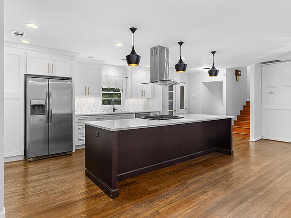 - Gourmet Kitchen: Expansive island with pendant lighting, stainless appliances, and ample cabinet space.