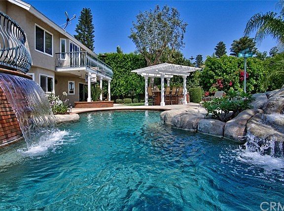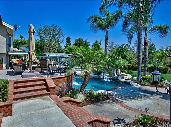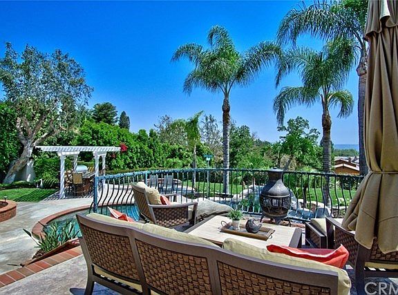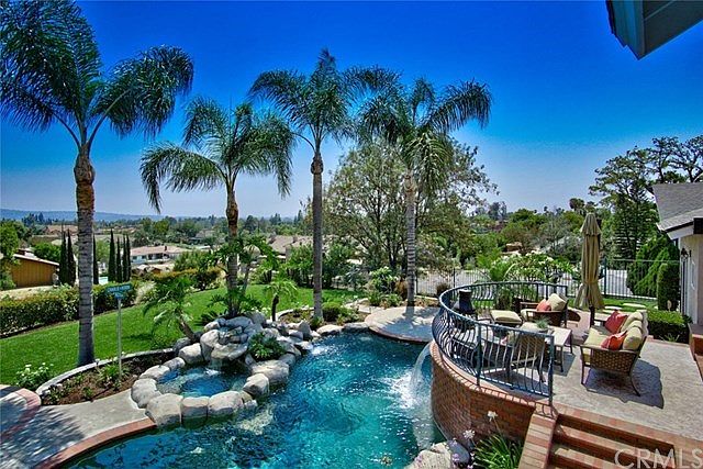 Unique luxury Five bedroom Estate tucked in on a private cul-de-sac in the heart of Yorba Linda with breathtaking panoramic views-city living surrounded by country settings. Enjoy the view from your beautifully landscaped backyard, BBQ area, fire pit with built-in seating, crystal clear pebble-tech pool with a sheet waterfall. Grand entrance with foyer, travertine flooring and chandelier opens to the formal living room with vaulted ceiling that steps out to a landing with seating area overlooking the poo/spa and watch the fireworks nightly from Disneyland. This homes features a formal living and dining area, a family room and a theater/game room all with their own fireplaces. The chef's dream kitchen features 9ft. granite island with stove cook top, bar seating and custom cabinetry with pullouts, top GE Monogram appliances, built-in Refrigerator and double oven. A separate bar area with granite bar seating for two, storage cabinet with wine fridge. A Master suite is luxuriously appointed with two walk-in closets, a spacious bath with dual sinks, soaking 'Jacuzzi' tub and balcony with view. Central A/C with three units for energy savings, alarm system, water softener, surround sound system, 3-car garage with plenty of storage, recessed lighting and neutral decor. Turnkey!!! The 30,000 SQ. FT. lot has so much potential for adding or enhancements. Yorba Linda features award winning schools, a new town center with a movie theater and restaurant in development.