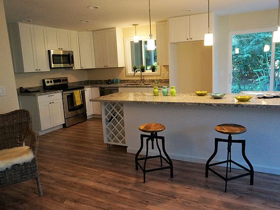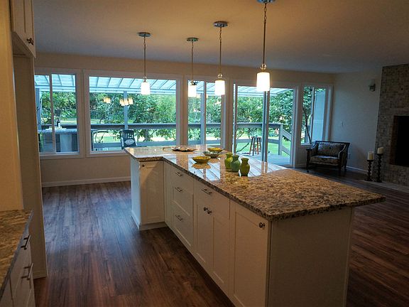 Gorgeous rambler on 1 +acre in Maple Valley Heights. Complete remodel opens up this classic home featuring modern kitchen with granite, custom island and tiled fireplace. Expansive windows open up to private garden views from four sliding glass doors, flooding the home with natural light. Lush gardens, mature evergreens, rhododendrons, and more! Master bedroom with tiled walk-in shower and closet. Attached garage adds 900 sq. ft. of parking, storage, work spaces. Nearly 1400 sq. ft. of decks.