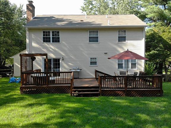 Spacious 5 BR 3.5 bath colonial. Inviting tile foyer walks past the large LR w hardwood floors into eat-in kitchen. Open updated kitchen has rich oak cabinets, granite counter & SS appliances. Grand formal DR w great natural light and pristine hardwood floors. 1st floor FR walks out to fantastic deck and fenced in backyard. Walkout basement in-law suite, 5th br/den, full kitchenette & table space.