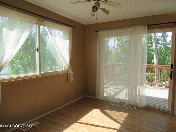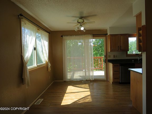 Lovely family home with southern exposure and Mountain Views. Granite counters and upgraded cabinets in kitchen. Fireplace in Living room and a wood stove in the Spacious Family room. Brand new Anderson windows throughout home and upper end gutters with leaf guard. Large fenced yard with large deck and shed. 9 miles of lighted bike trails and a quick commute to Anchorage. New Interior Paint.