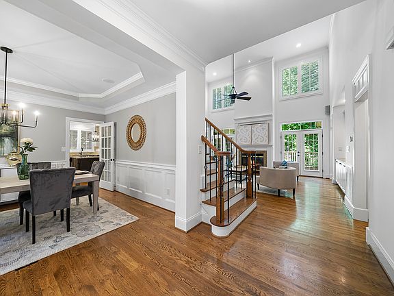 Welcome to your dream home nestled in the heart of Chapel Hill's Governors Club gated community! The Stone Brook neighborhood is unique in that it offers its own pool, tennis courts, fire pit, waterfall, playground and pavilion area to ensure that there's something for everyone to enjoy and is only accessible for Stone Brook residents and their guests. This exquisite home is unparalleled in luxury and comfort with its thoughtfully designed layout and premium finishes. Enjoy the elegance of the coffered ceiling and French doors in the study, as well as tray ceilings in the formal dining room. The living room features large windows and provides access to the deck and screened-in porch, perfect for relaxing or entertaining. The spacious primary bedroom, located on the first floor, serves as a serene retreat with its large ensuite bathroom, dual vanities, jacuzzi tub, and walk-in shower. Upstairs, you'll find three generously sized bedrooms, including a second-floor primary suite. The loft area offers a versatile space ideal for an office or reading nook. Downstairs, you'll find a large walk-out basement featuring an additional bedroom, a flex room that can be tailored to your needs—whether it be a gym, home theater, or craft room—and a spacious rec room. With an abundance of storage space throughout, and a 3 car garage, you'll have plenty of room to keep everything organized. This property offers the perfect blend of luxury, convenience, and comfort.