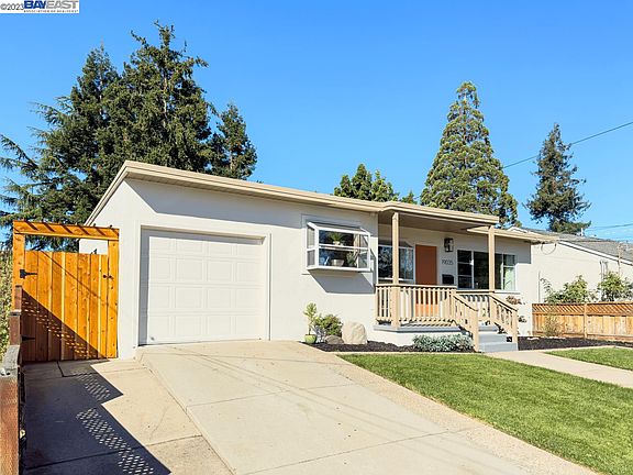 Steeped in history and nestled in the heart of Castro Valley, this 1949 home is a timeless blend of midcentury charm and modern convenience. Original details like the unpainted tongue and groove ceiling, a classic brick fireplace, and trendy pink shower tiles resonate with the past, while updates such as hexagon flooring in the bathroom add a touch of contemporary flair. The midcentury, flat-top architecture has been efficiently modernized with a recently-installed Armstrong® fiberglass roof, and the home features super-efficient heating and air conditioning through mini-split systems with individual temperature controls. The heart of the home, the kitchen, has undergone a stylish transformation with recessed LED lighting, Corian® countertops, and an open design featuring a convenient breakfast bar. Enjoy captivating views through the expansive picture window in the living room that overlooks the treetops of Castro Valley and the distant hills. This residence proudly resides in the esteemed Castro Valley School District, offering an excellent educational foundation. Step outside to discover a true outdoor haven in the oversized backyard, anchored by a majestic spruce tree and bordered by towering redwoods for added privacy. Make this house YOUR home and submit your offer today!