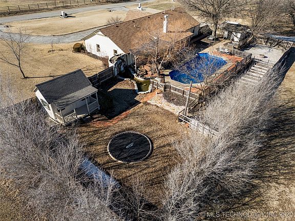 Fabulous single story ranch situated on 2.56 acres m/l right on the corner. An entertainer's paradise with an outdoor oasis featuring an inground liner pool, pergola, koi pond with a waterfall, fairy garden, inground trampoline, raised beds, firepit with a area for your outdoor games, she shed and 40 x 30 shop with 2 bay doors. House has been freshly painted inside and out, new granite in the kitchen, hall bath, primary bath, new hot water tank and sprinkler system in 2024. Just minutes from the growing town of Bixby. COUNTRY LIVING AT IT'S FINEST.