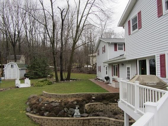 Redone from top to bottom, this 4 bedroom, 1 & 1/2 bath colonial is meticulous. Dream, heated & air conditioned workshop plus the bonus of an oversize 2 story garage with steps to a huge storage area. Sharp rec room walks out to hot tub. Newer mechanicals, deck, windows, doors & siding. Custom kitchen oak cabinets, ceramic tile counter tops & floor. Both baths are updated beautifully. All of this on almost an acre of lush landscaping. Backyard adjoins conservancy.