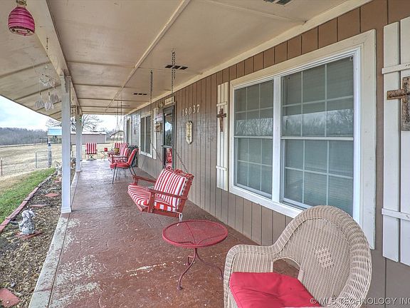 "Charming Country Retreat in Claremore! This beautiful property boasts a spacious three-bedroom, two-bathroom home with a two-car garage, with office, situated on 1.57 acres of picturesque rolling hills. Enjoy the serene landscape from the large covered front and back porch, surrounded by fruit trees and wildflowers. The country kitchen, indoor mudroom, and office (ideal for a hobby room) offer both comfort and practicality.