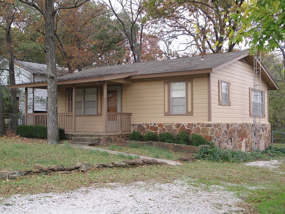 Pretty setting. Great Cabin 2 Bedroom, 1 Bath, over-sized insulated garage, and fenced in yard. open living room, nice sized kitchen w/breakfast nook. Large shade trees in front and back yard.