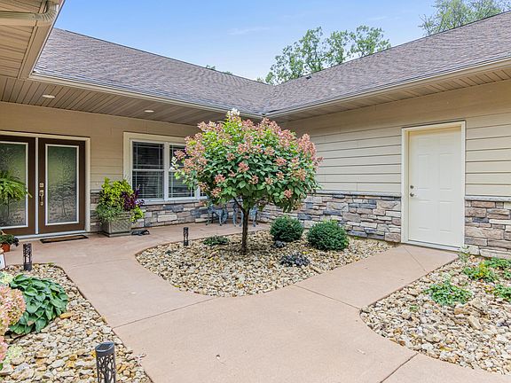 Welcome to a private wooded oasis situated on beautiful Elk River. True Single-Level living. This original owner, 2012/13 custom built slab on grade rambler boasts two Primary Bedrooms, each with en-suite bathrooms, a beautiful kitchen and great room, and a massive 8-car heated garage with space to build a 4th bedroom or media room or shop. Super efficient geothermal system with in-floor heat, new CoreTEC LVP flooring, high-end custom cabinetry and built-ins, stainless steel appliances, a private office for working from home, and a third bedroom with an en-suite bath as well. This is truly a one-of-a kind property that you have to see!