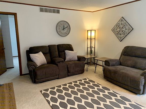 Never mow or shovel snow again! 4 bedroom and 2 bathroom move-in ready townhouse located in quiet, established, and desirable neighborhood. Close to hospital, exercise facilities, walking trail and schools. Main floor features 1 bedroom, an office that can be used as a non-conforming bedroom, bathroom, kitchen, and living space located on main floor. Laundry is also conveniently located on main floor. Skylights in kitchen, bathroom, and bedroom for natural light. Bathroom has large walk-in shower. Bathroom and kitchen have recently updated flooring and kitchen has newer paint. All kitchen appliances remain with sale and washer and dryer are negotiable. Large walkout lattice enclosed deck with newly installed roof for maximum privacy. Basement has 2 non-conforming bedrooms, bathroom, and living space. All basement rooms have new flooring. One of the bedrooms is over-sized with large walk-in closet/storage room. There is also extra storage space under the stairs. Large 2 car garage with built-in work bench and storage. Exterior-50 year shingles installed approx. 2 years ago and recently painted. Front yard space has underground sprinkler system. Common area includes large well-maintained yard with mature trees and privacy fence. There is also shared access to water well. Low HOA fee's!