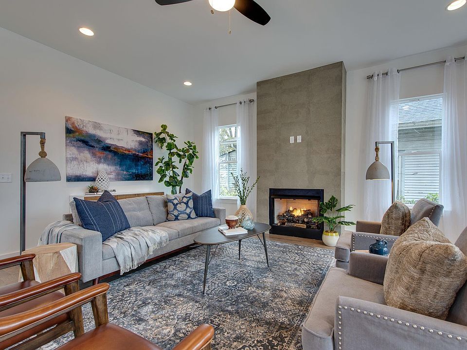 Just Reduced! Stunning, modern New Construction HPR in North Nash just a block from Buchanan Street & local favorites like Slim & Husky's!! An abundance of natural light & designer finishes throughout - including all hardwood floors, quartz countertops, stainless steel appliances, gas range & range hood, soft close white gloss cabinets, floating shelves, custom tile backsplash, deck, covered porch, custom limestone fireplace wall & much more. Interior photos from front staged unit!