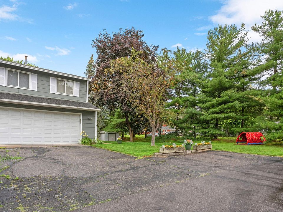 exterior & interior, new carpet throughout. Great location - Close to Hwy 52, 55, 62 and 494. Extra wide garage 23x19. Parking pad which fits two additional cars. Outdoor cat enclosure under the deck, with access door from the main level. New water heater & water softener Jan. 2023. Gas dryer 2022, washer 2019. New AC 2014 & New Furnace 2011. Newer SS Appliances. Main level has full bath with Jacuzzi jetted tub/shower combo, laundry room, and large bedroom. This large bedroom could be used as bedroom/family room, bedroom/office or, family room/office. Upper level has living room, kitchen, 2 bedrooms and a full bath. Deck is off the dining area. Steel shed in the backyard for extra storage. Main level – Sliding door out to a 10 x 6 patio.
