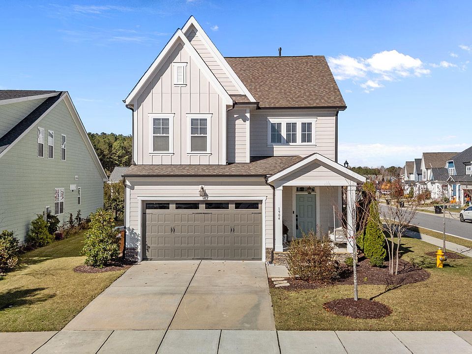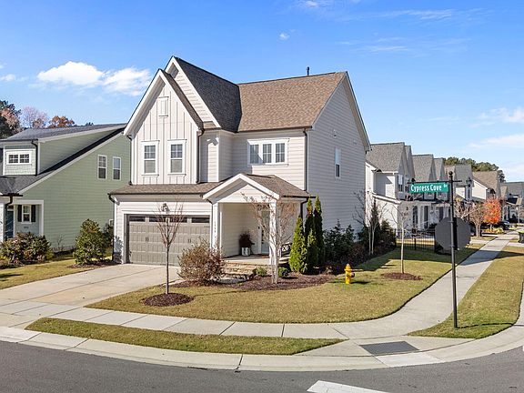 Welcome to 1904 Cypress Cove Drive in Wendell, where resort-style living awaits year-round. This home radiates warmth the moment you step through the front door. From the inviting front porch with its charming swing to the peaceful covered porch out back, every corner quietly says ''welcome home.'' The open-concept floorplan is perfect for everyday living and effortless entertaining. The living room flows smoothly into the dining area and chef's kitchen, creating a natural gathering space—whether you're hosting a crowd around the generous island or enjoying a cozy dinner at the table. No matter the occasion, this home invites you and your favorite people to settle in and savor the moment. Don't miss the roomy two-car garage, with a convenient drop zone just inside the door to keep essentials neatly organized. Head upstairs to a spacious loft—ideal for a home office, craft space, study area, or cozy reading nook. Just down the hall awaits a luxurious primary suite with a spa-like bath and an oversized closet. Two additional bedrooms offer generous space and large closets of their own. One of this home's standout features is the covered back porch overlooking the expansive, fenced backyard—beautifully maintained and perfect for play, relaxation, or gatherings. All of this comes with the incredible amenities of Wendell Falls: multiple parks, walking trails, two pools, community spaces, shopping, dining, and more. Everything you need is just a short stroll or drive away. Don't miss this fantastic home!