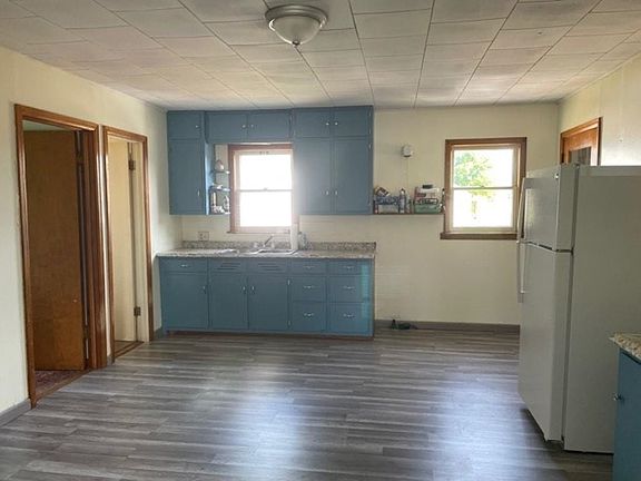 This two bedroom ranch home has new laminate plank flooring throughout the living room and kitchen areas. Open concept ranch has spacious eat in kitchen with refrigerator and range included. One ¾ bathroom on main level. Two bedrooms with carpet. Property has an attached one car garage with lower level full basement access and lower level laundry. Washer and dryer are included. Central Air and home has a metal roof. There is a Detached 3 car heated and insulated garage as well in the back of the property. Backyard area and alley access to second garage. Home is move in ready and close to schools and shopping on the Eastside.