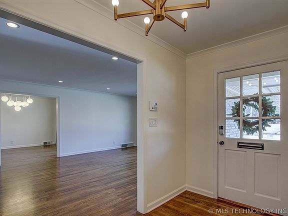 Superb mid-town location! Corner lot. Mature trees. Refinished hardwoods thru out. 2 fireplaces. Beautifully renovated - new kitchen with custom shelving, new interior and exterior paint , new lighting, new exterior concrete. Large family room opening to kitchen with stone WBFP. Large formal living with 2nd stone FP opens to formal dining. Situated on gorgeous lot in the heart of mid-town. Walk to Brookside - 1 mile to Utica Square. Side entry garage. This one is a must see! Owner is related to Broker.