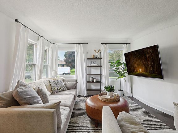 Back on Market. Tastefully updated Mid-Century rambler! Boasts new lighting, black hardware, paneled doors, knockdown ceilings & freshly painted. An inviting floorplan, bright & sunny w/ corner windows in LR & DR. The kit is a cook’s delight! Over 20’ of granite countertop offers great space for indulging all your culinary fantasies. SS appliances, subway tile & undercabinet lighting, Kit has a casual, coastal style, w/ wall of windows overlooking rear yard. Two inviting BRs on the main floor; one easily handles a king-size bed. LL Fam Rm finished w/ sheetrock walls & ceilings. Great space for romantic movie nights or gathering with guys for the game. Off the family room is a bonus room & a full BA for guests. Rear yard was made for entertaining! Expansive deck is perfect for outdoor dining or hanging with friends. Fenced yard, ideal for dogs or kids. Great location for walks in nature - just 3 blocks from trails in General Mills' 57-acre Research Nature Area. Quick Closing!