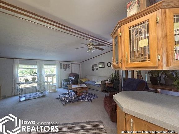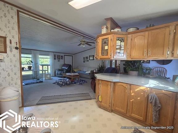 Enjoy quiet country living with wide open skys, while still having the convenience of a paved road for easy access plus SIX GARAGE STALLS. This 2000 ranch-style manufactured home offers 1,352 Sq Ft with an open floor plan, 3 bedrooms, 2 full baths (master bath has a jetted tub), eating bar, & laundry off the kitchen. Updates include an 8-yr old furnace, new water heater, and newer (4-5 yr old) triple-pane windows and patio door with a transferable warranty. Included: stove (3 burners don't work), refrigerator, range hood, dishwasher (Owner does not use), washer/dryer, and all window treatments. Step out from the patio doors on to a large 20 x 14 deck. There are several mature trees, a north-side windbreak, 2 water hydrants, and the large side yard is fenced in. The 26 x 40 attached 3 car garage is insulated, heated, has a pull-down ladder for attic access, and has a storm shelter. There is also a 24 x 42 detached garage with 3 overhead doors - two are 10’ high and one is 8’ high. A cement pad on the west side of the attached garage, is perfect for camper parking. The water softener is rented, the LP gas tank will remain (LP gas in tank will be extra). Negotiable items: lawn mower, garage workbench, and a generator large enough to power the whole house. Elec avg is $116.00 (per Midland Power) and LP was approx 650 gal for 2024 (per Drees Oil) This acreage has plenty of space inside and out, with excellent storage, multiple garages, and thoughtful updates.