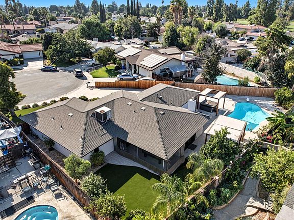 Luxury Family Haven in the Westwood Estates in Southwest Bakersfield.Discover your dream home. This one-story estate includes unmatched curb appeal, boasting a freshly updated exterior with a stunning design with many features including a newer roof, synthetic grass, RV access, drive through garage, sparkling pool, above ground jacuzzi hot tub, beautiful pergola, stunning enclosed patio area all on a 10,454 sf lot. The interior exceeds your wants with updates everywhere. Enjoy 2 living areas, 3 bedrooms, 2.5 bathrooms, window shutters, stone fireplace, wood look tile flooring, led recessed lighting, updated fixtures and so much more. The gourmet chef's kitchen includes a farm style sink, subway tile backsplash, custom white marble counters, newer stainless steel appliances, newer white cabinetry and much more.