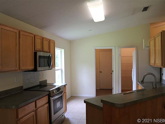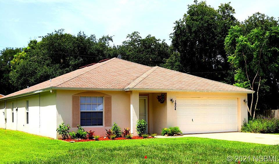 Enjoy beach town living without the cost in this spacious light & bright 3 + bedroom, 2 bath home on triple lot (120x 125) in the quiet neighborhood of Florida Shores in Edgewater; only 5 mins to New Smyrna Beach shopping & medical and only 10 mins to the beach. This 1884 sqft home features volume ceilings & large rooms throughout, brand new paint & carpet, plus less than 1 year old A/C unit still under warranty & transferable termite bond. Kitchen offers new stainless steel appliances & oak cabinetry w/breakfast nook area. Grand combination living room & dining room offers limitless entertaining. Very large master bedroom & master bath with walk-in closet, shower & garden tub, with exit door to rear of home. Big den bonus room with jack & jill door to 2nd bedroom & bathroom. Floors feature new carpet in bedrooms, and neutral ceramic tile floors throughout the remainder of the entire home. Interior laundry room, with 2 car finished garage and room to expand out the back with a patio & pool, covered patio or a Florida room. NO HOA here, so bring your RV & toys to store on your own extra wide lot. The possibilities are almost endless. Must be seen to experience the fullness of space this home offers. Call listing agent Kelly Jordaan for private showing & details.