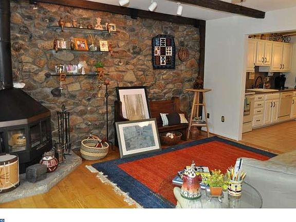 Beautiful old stone barn converted into two three story town homes. Exceptional opportunity to live in a bit of history with a modern interior. Property available is on the right side of the building and includes use of the two car garage. Living room with exposed stone accent wall, wood burning stove, & sliders to large Trex deck. Updated kitchen is open to dining area and has abundant storage with three pantry closets. Upstairs you will find master bedroom with vaulted ceiling with skylight, exposed beams, private full bath, and private Trex deck. Second bedroom is spacious and also has skylight and full bath. Lower level features family room with built-ins, study, and sliders to patio. Large, well landscaped yard with stone accents and small pond. Detached garage with second floor studio. Additional Information: 1) Application fee is $40 per applicant 2) Dogs and other pets considered w/owner approval & deposit - No cats 3) No smoking 4) Security system monitoring available at tenant's expense 5) Renters insurance required 6) Tenant to use area rugs and/or floor protectors under furniture on hardwoods 7) Tenant responsible for snow removal, lawn mowing, weeding, & leaf removal 8) Tenant responsible for all utilities including water