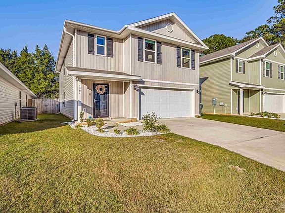 Beautifully bright and thoughtfully designed, this 5-bedroom, 3-bath home offers over 2,400 square feet of comfortable, modern living on a quiet cul-de-sac in Pensacola. The main level feels open and sunny from the moment you walk in, with a spacious living area that flows easily into a stylish kitchen featuring a large center island, walk-in pantry, stainless steel appliances, and plenty of room for everyday cooking or weekend gatherings. A first-floor bedroom adds valuable flexibility, ideal for guests, a home office, or a play space. Upstairs, a generous loft provides another light-filled spot to spread out, whether you need a second living area, media room, or workout zone. The primary suite offers a calm, roomy retreat with space to unwind. Outside, the fenced backyard is ready for relaxing, pets, or play, and the covered patio extends your living space outdoors. Located just 30 minutes from Pensacola Beach and close to everyday conveniences, this home blends space, comfort, and an easy, modern feel in a setting that’s hard to beat. Schedule your private showing today!