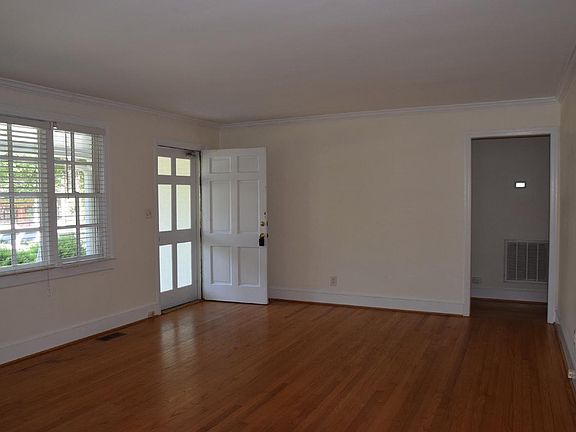Available for 2/1 move in. Charming front porch with rocking chairs welcomes you to this Five Points Vanguard Park, one story. 2 bedroom. 1 bath duplex with hardwoods throughout and deck overlooking large flat back yard for your outdoor activities. The spacious living room includes gas log fireplace and kitchen has door to rear deck and yard. Includes off-street parking. Close to Downtown Raleigh and Cameron Village. Permit 1 adult pet under 30 lbs with $300 pet fee. No smoking permitted.