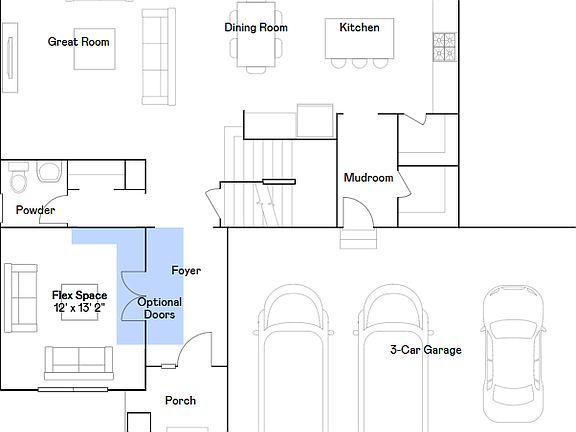 - Room types: Dining Room, Family Room, Kitchen, Bedroom 1, Bedroom 2, Bedroom 3, Bedroom 4, Flex Room, Loft
