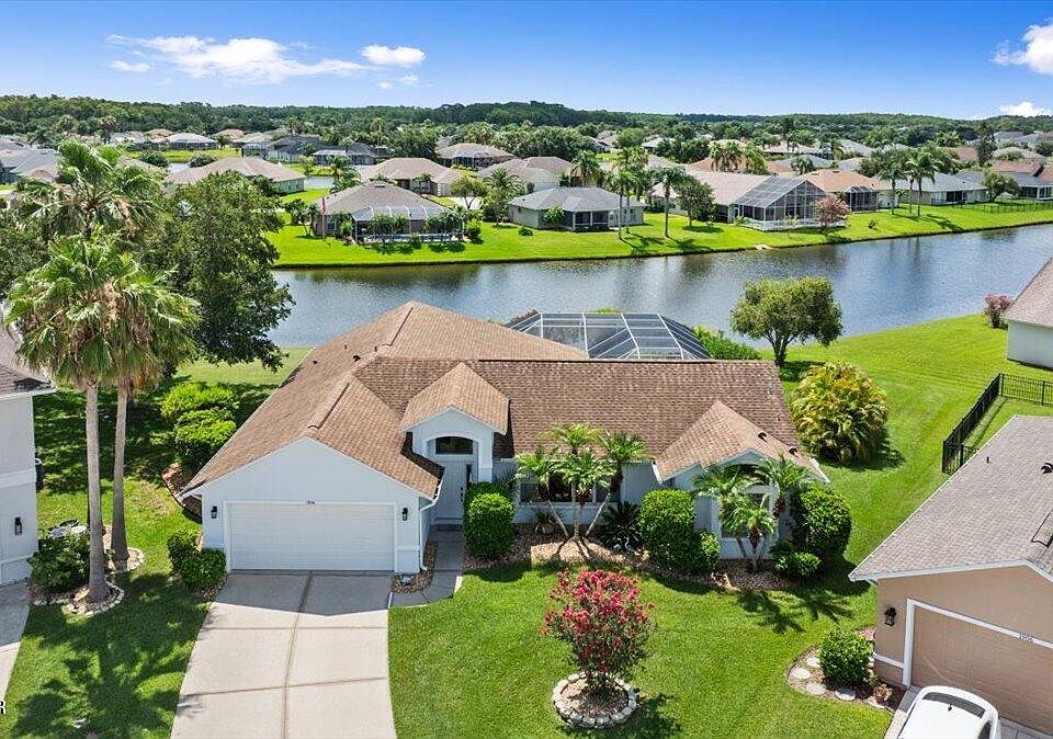GORGEOUS ''COASTAL CHIC'' REMODELED 3-BEDROOM, 2-BATH LAKEFRONT POOL HOME IN WATERS EDGE. **THIS HIGH & DRY** CONCRETE BLOCK HOME IS A HIDDEN TREASURE SITUATED IN A SECLUDED CUL-DE-SAC FEATURING BEAUTIFUL UPGRADED LANDSCAPING. IMPRESSIVE ENTRYWAY SHOWCASES CUSTOM TRIM WORK & STUNNING LUXURY VINYL FLOORING... ENTERTAIN GUESTS IN YOUR SPACIOUS FORMAL LIVING ROOM HIGHLIGHTED BY DECORATIVE PILLARS, HIGH CEILINGS AND AN ABUNDANCE OF NATURAL LIGHT. REMODELED GOURMET KITCHEN FEATURES GORGEOUS QUARTZ COUNTERS, WHITE SHAKER WOOD CABINETRY, STACKED STONE BACKSPLASH, BREAKFAST BAR, FARMHOUSE STYLE SINK, STAINLESS APPLIANCES, PANTRY, DECORATIVE NICHE SHELVING DISPLAY, TONGUE & GROOVE CEILING & EAT-IN DINING AREA... OPEN FAMILY ROOM OFFERS COMFORT & STYLE WITH ACCENT LIGHTING & SLIDER ACCESS TO COVERED LANAI AND SCREENED-IN SOLAR HEATED POOL W/TRIPLE WATER-FALL FEATURE & SPECTACULAR LAKE VIEWS... FRENCH DOORS OFF LIVING ROOM LEAD TO PRIVATE DEN, HOME OFFICE, CRAFT AREA OR WORKOUT SPACE W/SERENE POOL & LAKE VIEWS... COULD ALSO BE THE PERFECT SPACE FOR A NURSERY!! SPLIT BEDROOM PLAN OFFERS SOOTHING PRIMARY EN-SUITE FEATURING POOL & LAKE VIEWS, HIGH CEILINGS, CUSTOM WOOD PLANK HALF WALL & ACCENT LIGHTING... DOUBLE DOOR ENTRY INTO SPA-LIKE BATH W/QUARTZ COUNTERS, TWO SEPARATE SINK VANITIES, WOOD CABINETRY, STACKED STONE, WALK-IN SHOWER, GARDEN TUB & SPACIOUS WALK-IN CLOSET. SEPARATE GUEST WING WITH TWO BEDROOMS AND BEAUTIFULLY REMODELED GUEST BATH... HOME ALSO INCLUDES INSIDE LAUNDRY, TWO CAR GARAGE, NEW FRONT DOOR, ROCK AROUND ENTIRE HOUSE, NEWER POOL PUMP, NEW WATER HEATER & NO FLOODING. ZONED FOR CYPRESS CREEK ELEMENTARY, CREEKSIDE MIDDLE & SPRUCE CREEK HIGH SCHOOL... WATERS EDGE OFFERS NEVER ENDING SIDEWALKS FOR YEAR-ROUND OUTDOOR ACTIVITIES SURROUNDED BY BEAUTIFUL LAKES, NATURAL PRESERVES AND WILDLIFE...