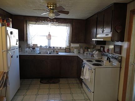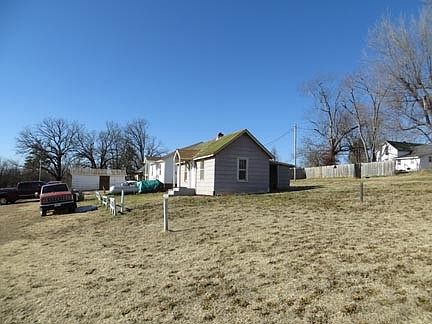 #4934- Two homes on a 150x100 lot, live in one & rent the other. Main home is 2 bedrooms, 1 bath, central gas heat, plus outside wood furnace, central air, laundry room, appliances are optional. Home is in good condition- it was recently remodeled. New thermo pane windows and new vinyl siding. Also included are a storm cellar and 2 storage buildings. The second home is 3 rooms with a bath. All this in a small village 6 miles from county seat town. Excellent level lot for gardening. Owner wants to move to East Tennessee and so he is offering to sell much below what he has invested in it. $47,500.